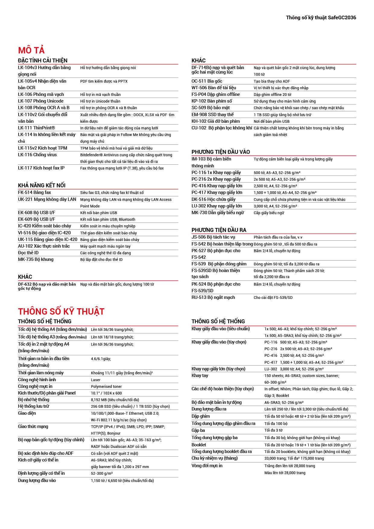 | Định dạng đầu ra | TIFF, PDF, Compact PDF, JPEGXPS, Compact XPS, pptx docx,xlsxSearchable PDF, PDF/A, Linearized PDF,Page setting | |