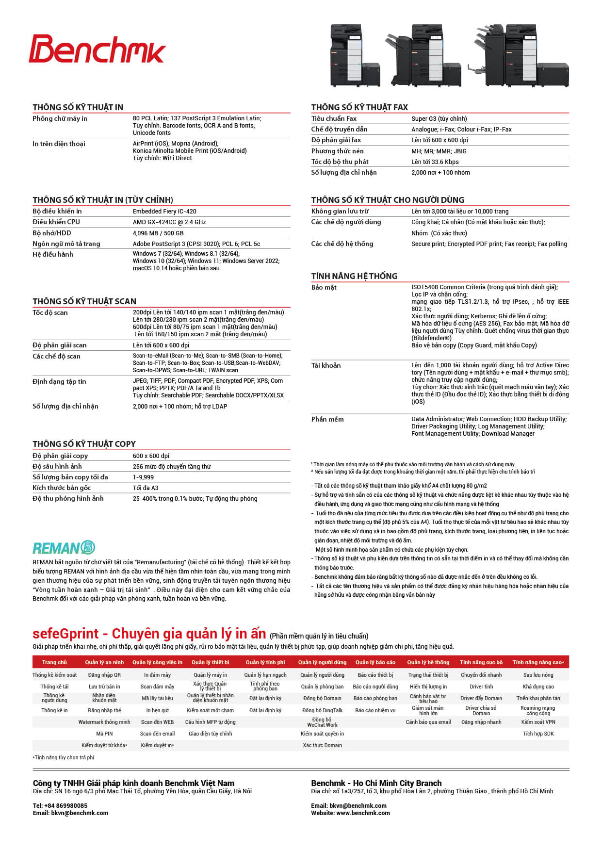 | Thông số chung | Tên sản phẩm | Benchmk safeGC2075 |